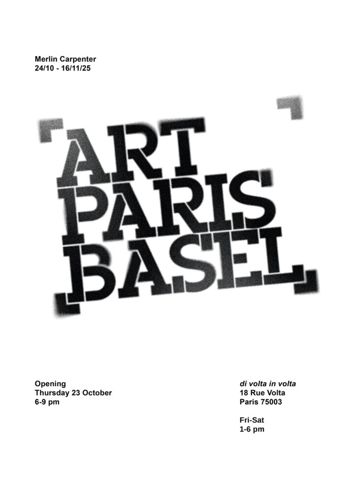 Yet, rather than displaying a form of complicity, and beyond the demonstration of the functionality of the supports as tested and approved in real life, Merlin Carpenter employs blank readymade wall pieces based on a “grid” as if they were a cross section of the 3D model he has been experimenting with, allowing him to reiterate and test certain hypotheses about interchangeable or smeared together places and times such as Paris, Basel, or online.
